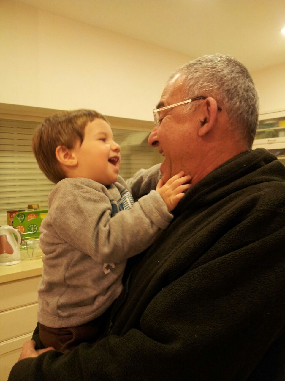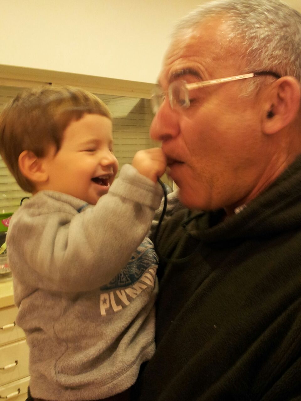 השעה 18:35 יום שבת אחה"צ אני מחזיק את נכדי בידיים, יגל לב שמו,כאשר הוא חוזר שוב ושוב אחרי המילה הכי נפוצה בבית שלנו בסוף השבוע:" סבא, סבא" שנשמע יותר כמו בבה. הבחור בן שנה ותשעה חודשים,על ידיי, פניו מול פני, דוחף שוב ושוב את החוט של כובע הסווצ'ר שלי לפי ואני כאילו בהפתעה שוב ושוב נושך את ידו, והוא מתגלגל בצחוק ספונטאני, ואני אחריו. משחק. הוא בחיים במשחק אחד גדול, החיים עבורו משחק. אושר. כל רגע הוא חדש עבורו. סקרנות בלתי נגמרת. הכול בשבילו ברגע הזה. לא יודע שיש עתיד והוא כמעט חסר זיכרון עבר. לא עסוק בכלום חוץ מהרגע הזה. עובר מגירוי לגירוי. אושר, אחד גדול. כייף והנאה.